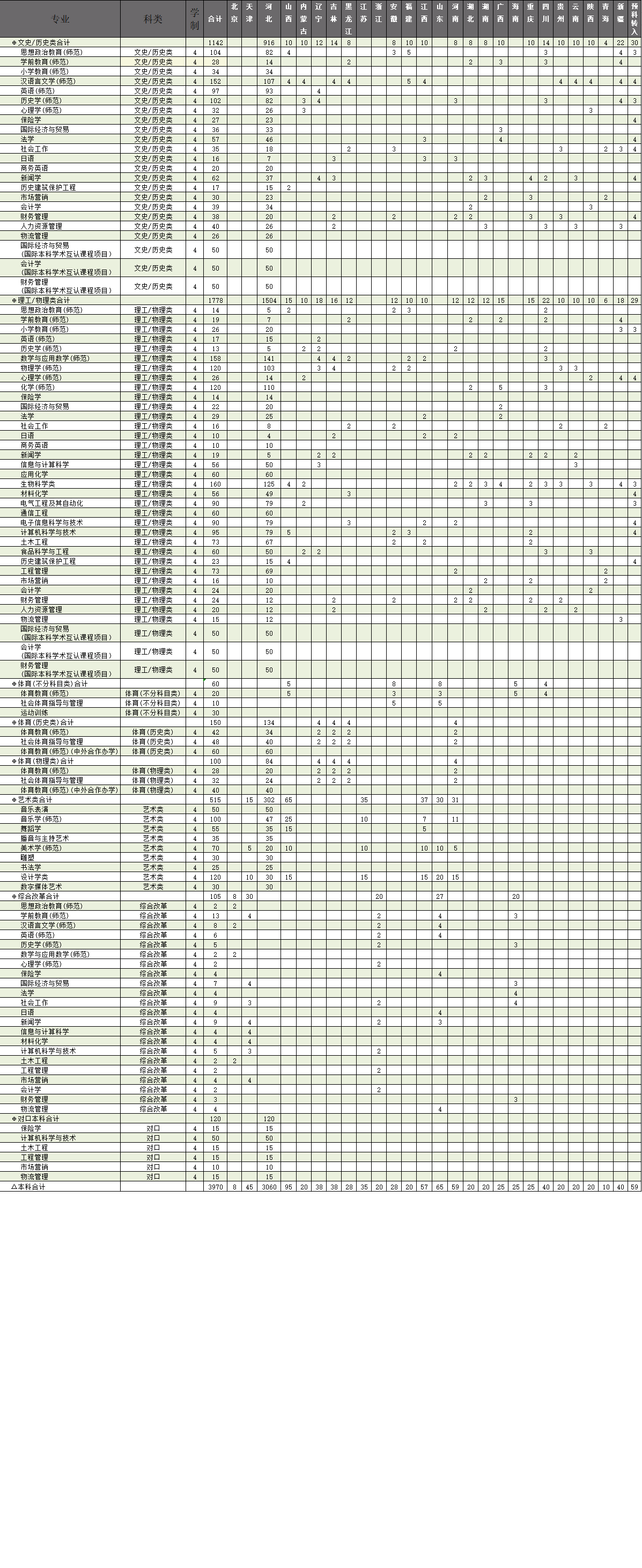 2025年廊坊师范学院招生计划表