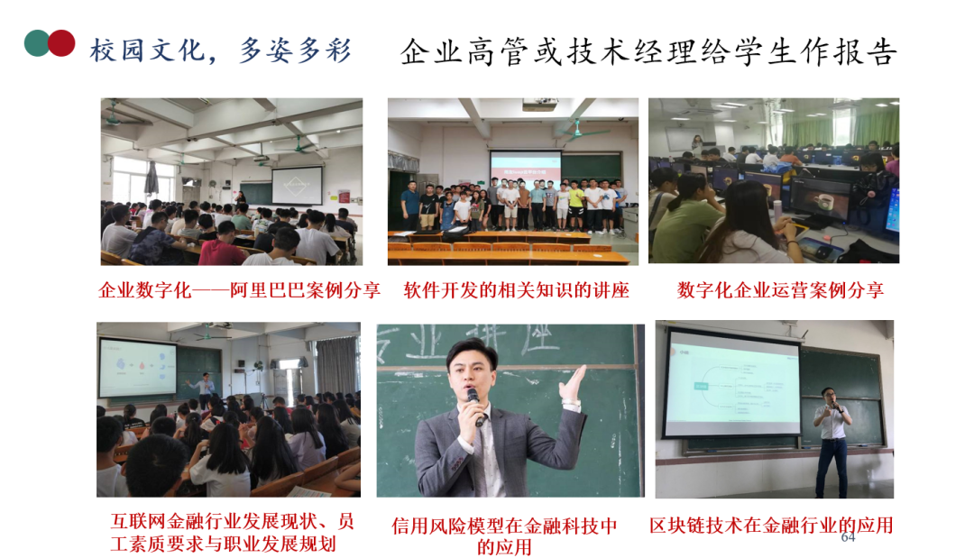 学院顺应“互联网+”国家战略,充分发挥互联网专业优势,构筑“一专一团一赛一品一企”的校园文化建设新模式,将党团、专业、志愿服务、社会实践、实习实训等元素有机融合到校园文化活动中,举办互联网“+”年华系列活动,建设具有浓厚专业特色的校园文化。互联网“+”年华先后获得广东金融学院校园文化优秀成果一等奖、广东高校校园文化优秀成果三等奖、广东高校精品项目等荣誉。
