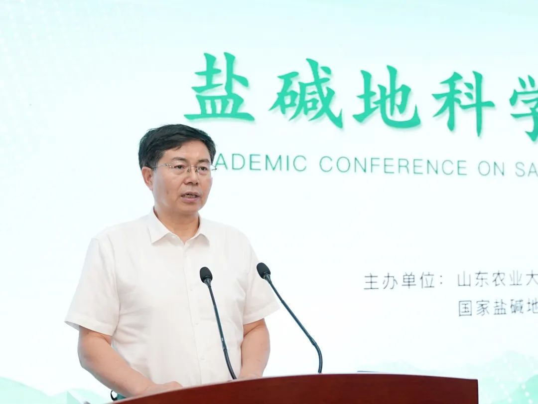 徐剑波在致辞时代表学校向莅临本次会议的各位专家、学者表示热烈欢迎,向长期以来给予学校关心与支持的社会各界表示衷心感谢,并介绍了学校近年来“冲一流”建设情况。他说,盐碱地是我国重要的后备战略耕地资源,盐碱地综合改造利用是农业综合生产的重要方面,对保障国家粮食安全、端牢中国饭碗具有重要战略意义。作为农业高校,山东农业大学始终牢记使命担当,依托小麦育种全国重点实验室等国家级和省部级研究平台,在盐碱地产能提升、生态化利用、生物育种等方面持续进行科研攻关、成果转化。徐剑波表示,此次学术会议的召开,是落实农业强国战略、践行“藏粮于地、藏粮于技”的重要举措。希望大家加强协同合作,定期开展学术交流,进一步构建“政产学研用”深度融合机制,共同做好盐碱地特色农业大文章,为保障国家粮食安全、服务黄河流域生态保护和高质量发展等战略需求提供重要引擎和关键支撑。