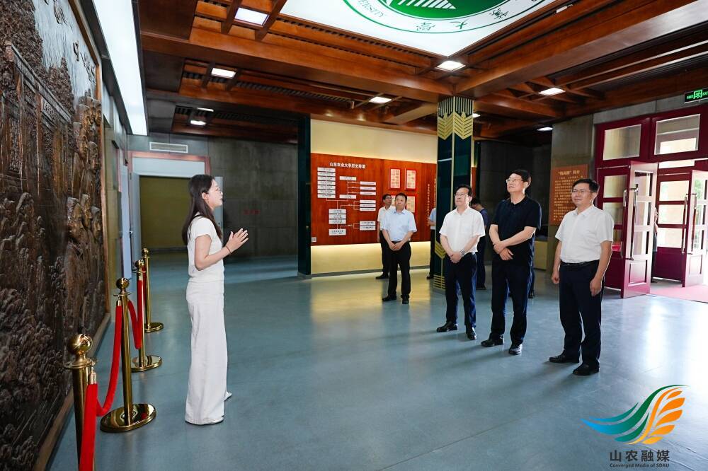 孙来斌一行调研了校史馆、小麦育种全国重点实验室、冷冻电镜中心,对学校扎根齐鲁大地,服务国家战略的责任担当给予高度评价,对农业科技创新和人才培养等方面取得的成就给予充分肯定。孙来斌表示,山东正扛起“走在前、挑大梁”的使命担当,全面推进教育强省、农业强省、科技强省建设。山东农业大学作为省属重点高校,在服务山东乃至全国农业发展中肩负着重要使命,要充分发挥学科和人才优势,聚焦国家粮食安全和乡村振兴战略,在种业创新、农业绿色发展、智慧农业等领域取得更多突破性成果,为保障国家粮食安全和推动山东农业高质量发展贡献更大力量。要锚定“冲一流”建设目标,进一步优化学科布局,深化产教融合协同育人,培养更多堪当民族复兴大任的高素质人才,为教育强省建设提供坚实的人才支撑。省发展改革委将持续深化服务保障,与学校建立常态化对接机制,强化政策协同、资源共享,共同谱写教育、科技、人才协同发展的新篇章。