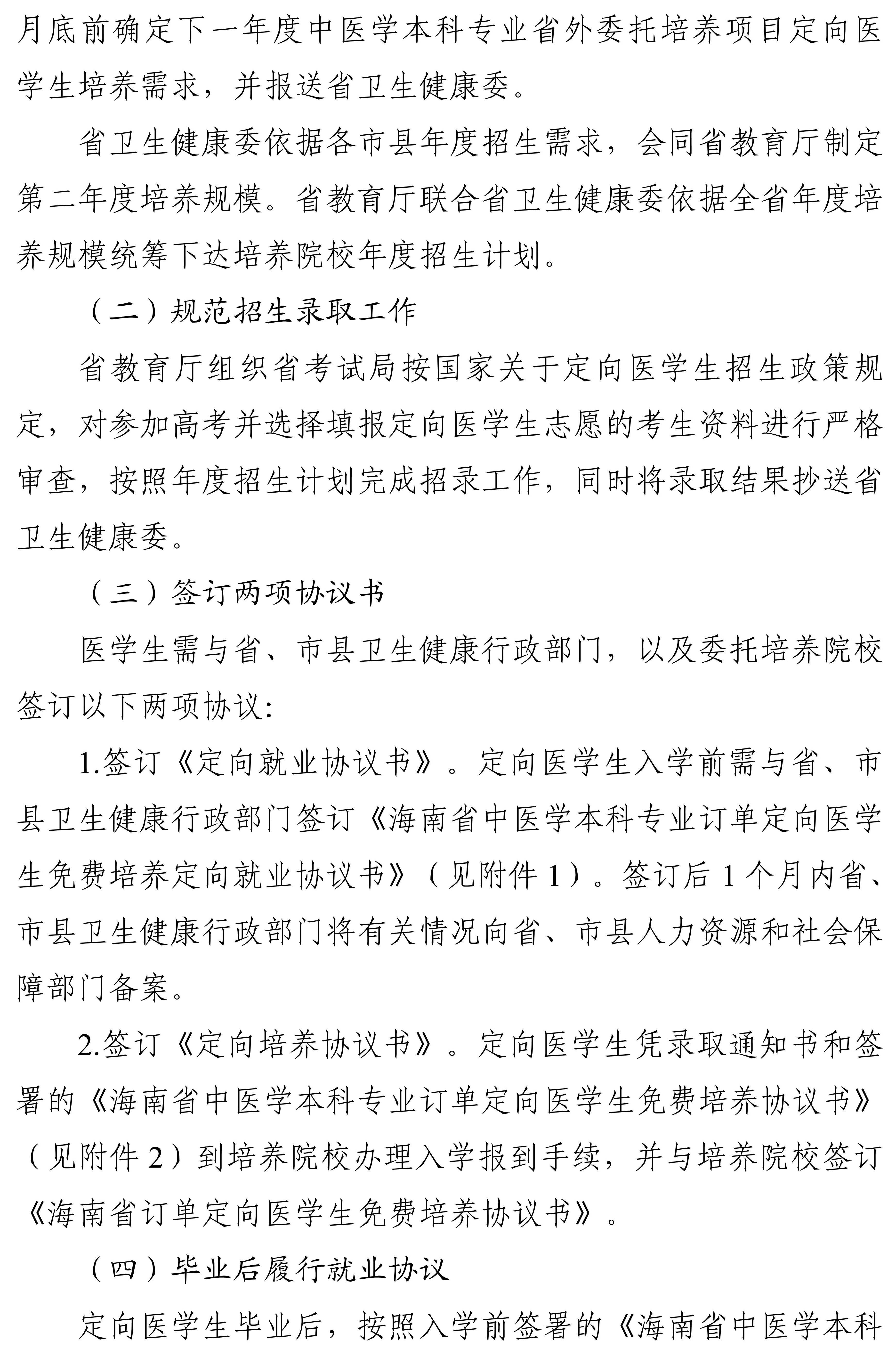中医学本科专业订单定向医学生委托培养 (省外项目)方案 发布日期:2025-06-15 来源: 省考试局 【字体:大中小】 打印 附件: · 附件1.海南省中医学本科专业订单定向医学生免费就业协议书培养定向协议书(参考样式).pdf · 附件2.海南省中医学本科专业订单定向医学生免费培养协议书(参考样式).pdf