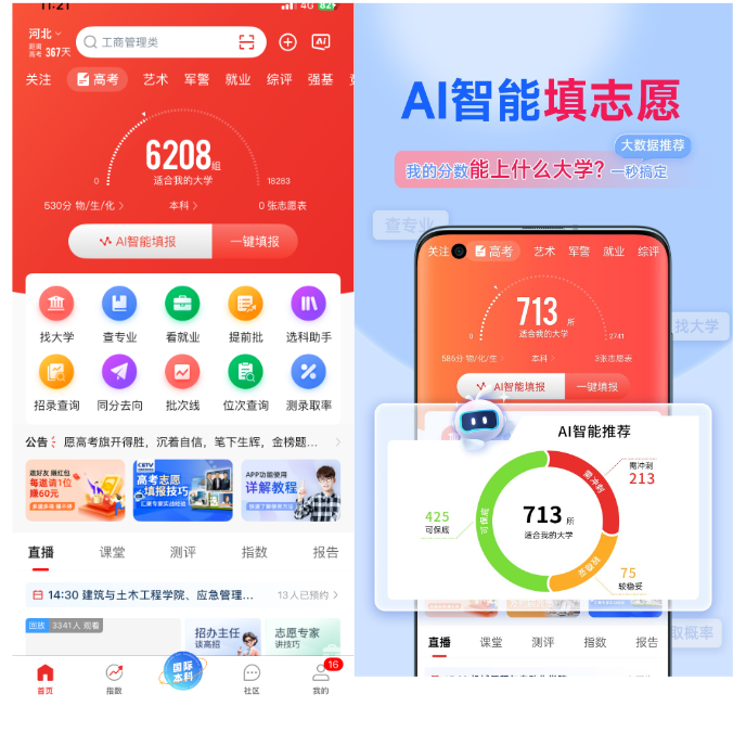 平行志愿虽然相对公平,但志愿顺序仍然重要。考生应将最心仪的院校放在前面,同时合理安排后续志愿,确保有备选方案。优志愿APP的【智能填报】功能可以根据考生的分数和选科,一键生成科学合理的志愿填报方案,帮助考生优化志愿顺序。