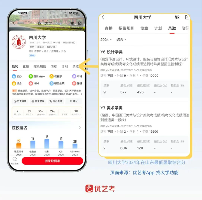 部分院校可能会对考生的单科成绩、文化分成绩、省统考成绩有单独要求,在报考前务必认真研读学校的招生简章、招生章程等等,优艺考APP内标注了各大高校或专业在招生上的限制要求,能很大程度上保障考生避免退档风险。