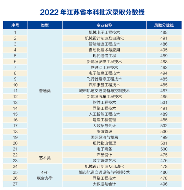 2022年江苏省普通高考本科批次各专业录取分数线