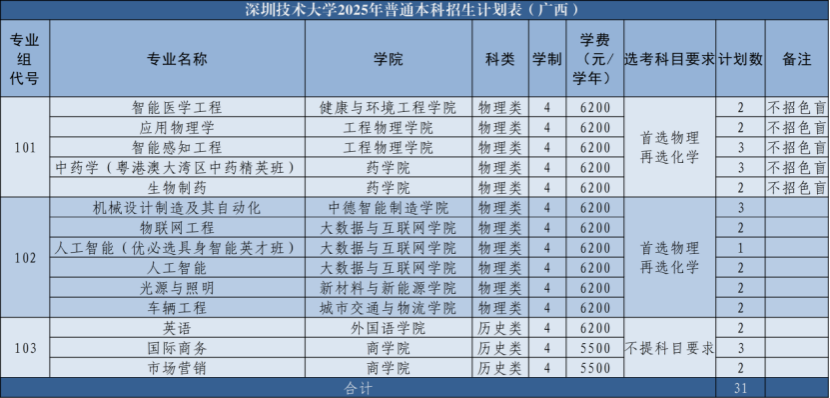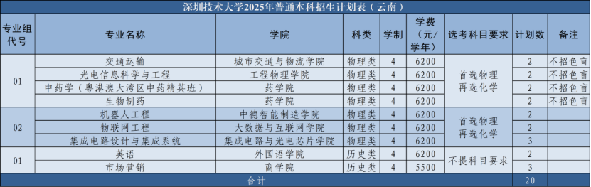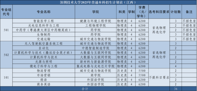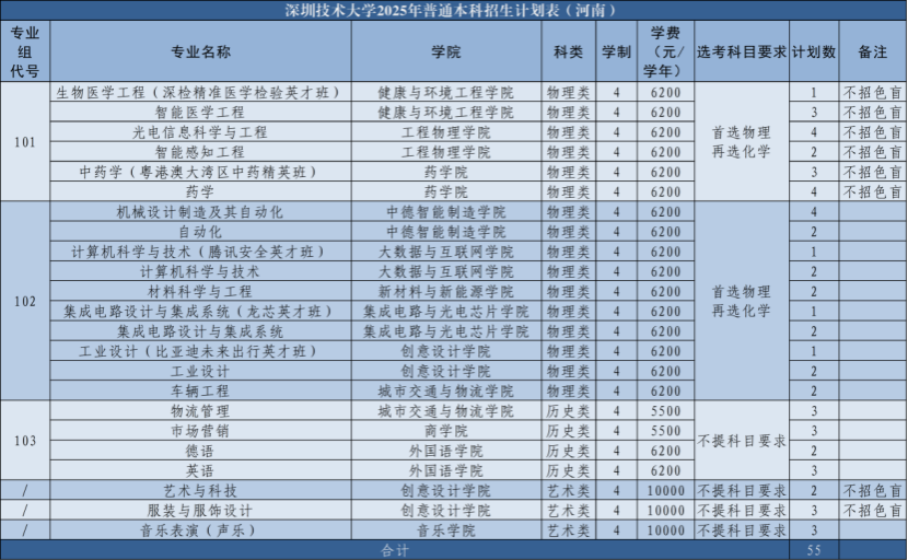 4.交通运输、生物医学工程、智能医学工程、应用物理学、光电信息科学与工程、智能感知工程、药学、中药学、生物制药、艺术与科技、环境设计、服装与服饰设计专业不招色盲。