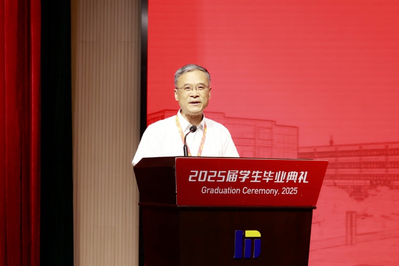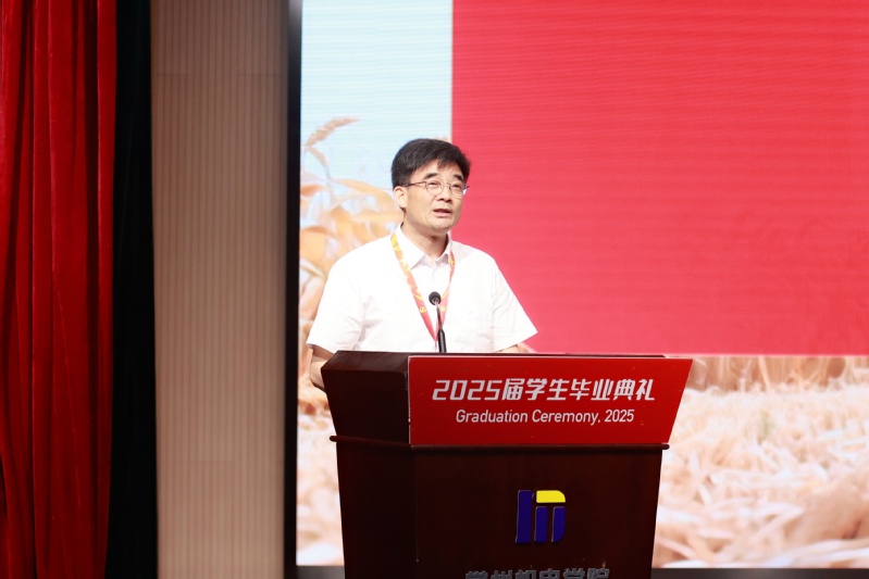 校长许朝山致辞。他以《沐浴常机电荣光成长,赓续常机电精神前行》为题,代表学校向毕业生表示热烈祝贺。这三年,2025届毕业生心系祖国,在持续奋斗中创造了精彩人生,交出了一份属于伟大时代、最美机电、更好自我的优秀答卷。他提出三点寄语:一是热爱可抵岁月长,做燃情生活的“乐天派”;二是精进不负好时光,做砺金工作的“匠心人”;三是传承续写新荣光,做学校精神的“践行者”。
