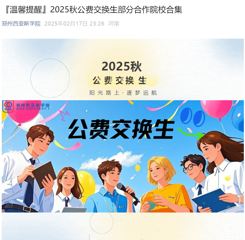 作为一所国际化特色鲜明的高校郑州西亚斯学院先后与 66 个国家和地区的 276 所高校开展友好交流合作,每年有来自 30 多个国家留学生来校就读。除此之外,每年都有丰的交换生项目、国际夏令营、海外实习机会向学生开放。你可以走进世界名校课堂,感受不同的教育文化;参与国际学术会议,与全球学子交流思想;踏上海外实习之旅,积累国际化的实践经验。在这里,世界触手可及,多元文化的碰撞将为你打开全新的视野,助力你在全球化浪潮中脱颖而出。