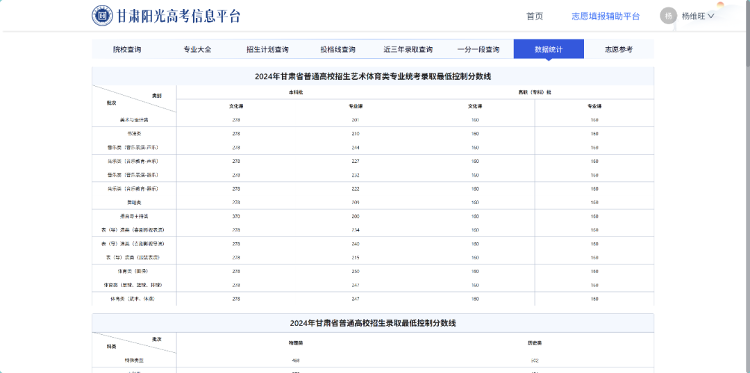 近年录取数据统计页面为考生提供近年甘肃省各类高校各科类、各层次招生录取情况、分数线等信息查询。