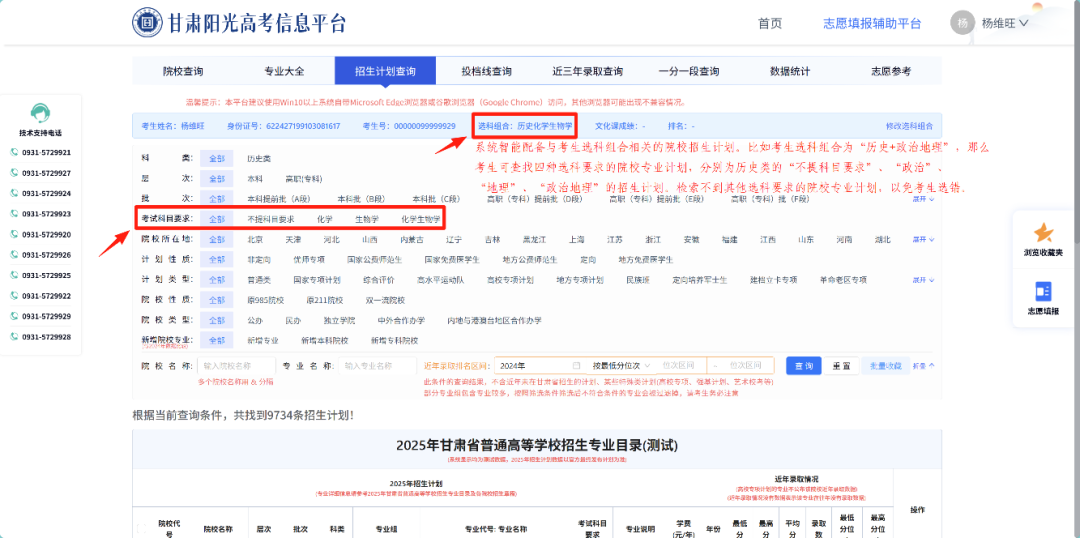 需要提醒的是,志愿填报辅助系统并非正式的志愿填报系统,主要是为考生提供高考志愿填报信息查询及辅助服务。正式填报志愿时考生须在规定的时间内,登录"甘肃省国家教育考试综合管理平台-考生服务平台"进行正式志愿填报。