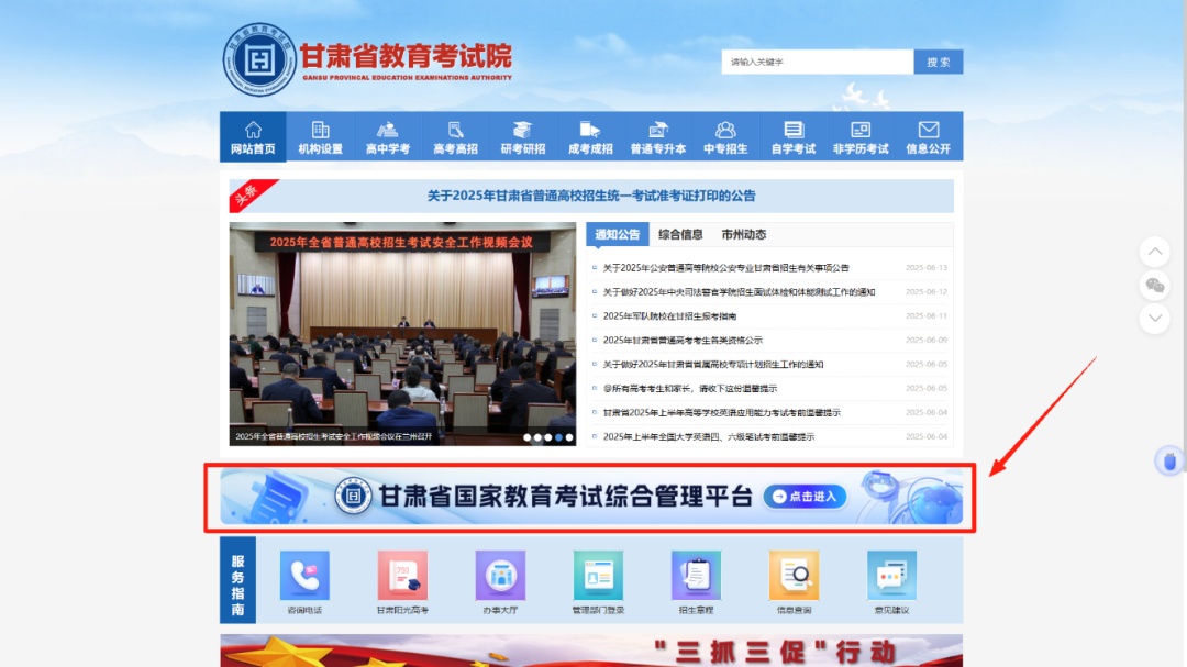登录考生服务平台后,点击引导页“普通高考-立即进入”。