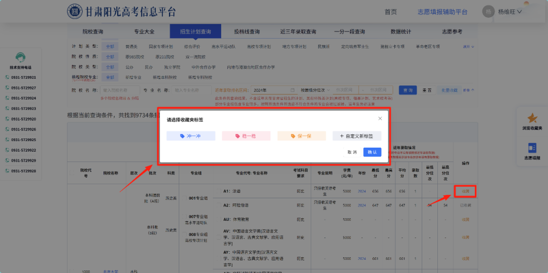 点击右侧“浏览收藏夹”按钮查看已收藏的专业内容。若考生需要修改已收藏专业的标签,可以通过点击该专业的收藏标签进行切换。