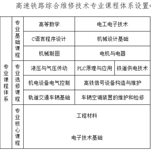 本专业面向高铁轨道行业,培养德、智、体、美、劳全面发展,具有机电设 备维修与管理专业必备的理论知识、岗位技能和职业素质,能够从事机电设备调 试、运行维护、检修和管理等工作,具有创新和实践精神、良好的职业道德和健 全体魄的高素质技能型专门人才。