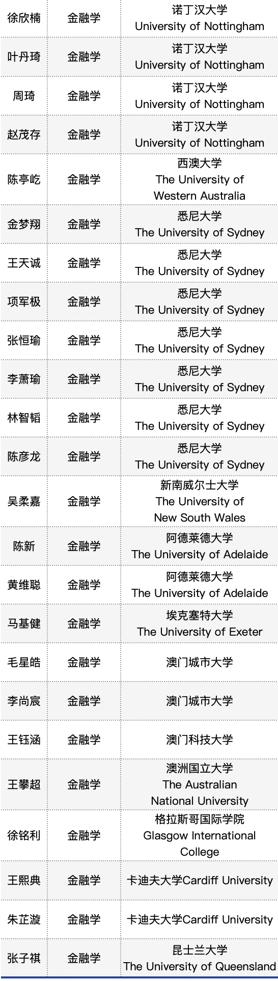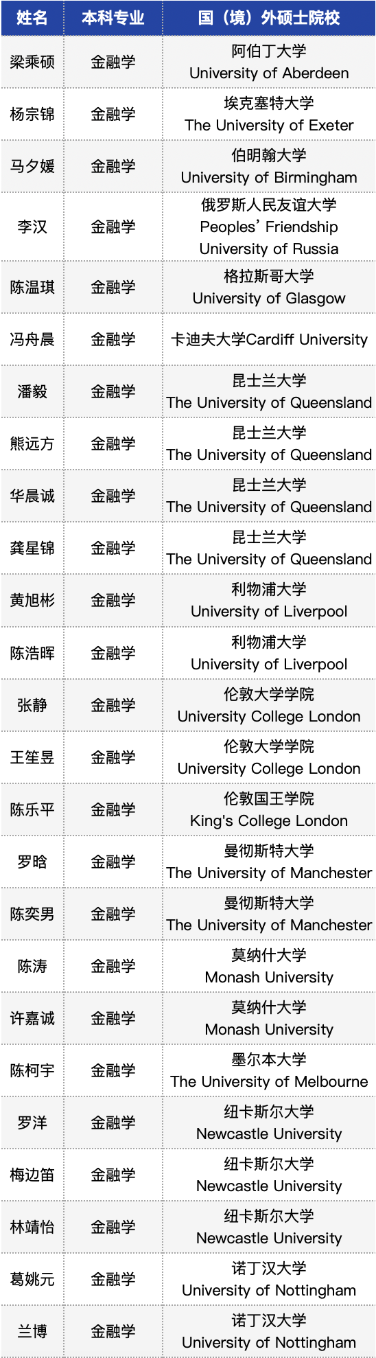 金融学专业可申请的海外院校专业有:金融学、国际金融、金融工程、银行与金融、公司金融、会计与金融、经济学、金融与经济学、金融科技等。