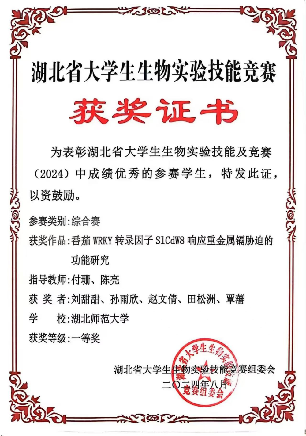 1. 教师队伍结构合理。湖北名师2人,湖北课程思政名师1人,黄石突出贡献专家2人,省市科技特派员18名,教授9人,副教授23人,博士28人(占教师比例77%),分别毕业于德国慕尼黑大学、中国科学院、清华大学、武汉大学、华中科技大学等国内外著名高校,具有生物学、食品科学、环境科学等研究背景。承担了国家自然科学基金、中央引导地方科技发展基金、湖北省自然科学基金等各类项目近200余项,科研经费逾2000万元。在J Biol Chem、Plant Physiol、J Am Chem Soc、FEBS Letters等国际重要学术期刊上发表论文80余篇,其中SCI论文50余篇;申请或获得授权国家发明专利10余项;获得湖北省自然科学奖二、三等奖,湖北省科技进步一、二等奖、湖北省科技发明奖三等奖等奖项10余项。科研团队被黄石市授予“情系大地服务三农创新团队”荣誉称号。