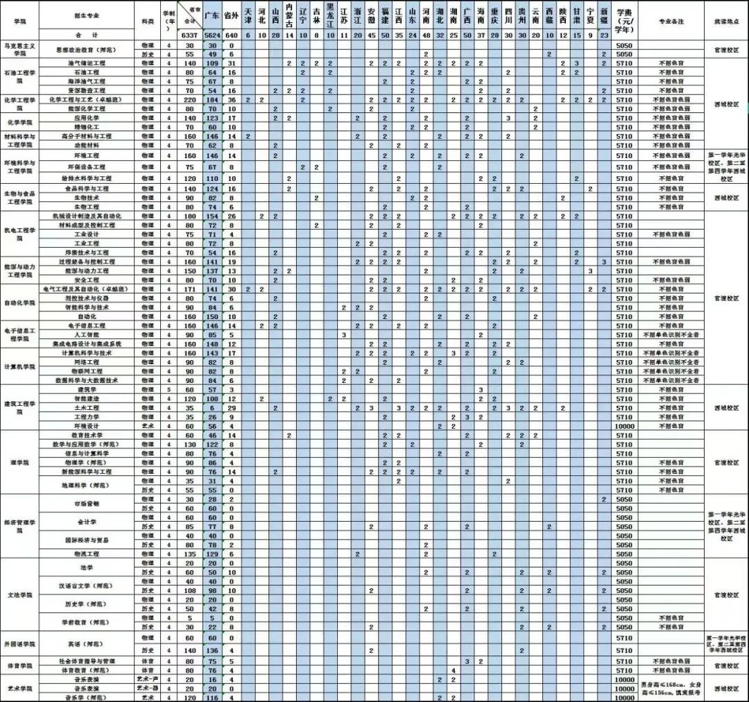 2.广东石油化工学院广东省外招生计划640人:计划在广西、福建、安徽、河南等27个省(区、市)招生,首次在宁夏回族自治区招生。