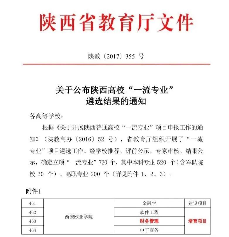 ▲陕西省教育厅文件●陕西省一流专业建设点(欧亚学院首批)