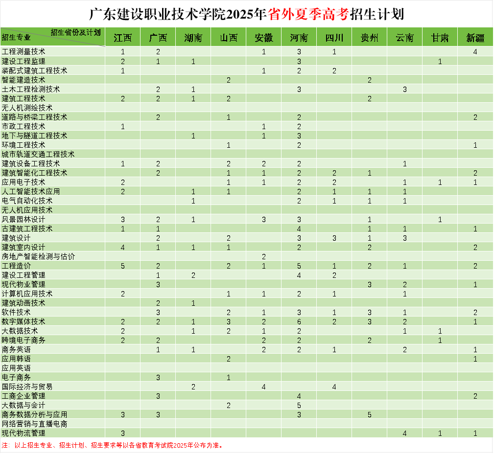 2025年广东省外夏季高考招生计划