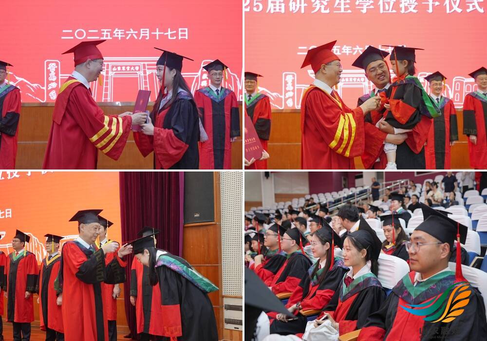 6月17日,山东农业大学2025届博士研究生学位授予仪式在岱宗校区文理大楼隆重举行。学校党委副书记、校长、学位评定委员会主席冷畅俭,学校副校长、学位评定委员会副主席林海参加活动,逐一为91名博士学位获得者代表颁授学位证书、拨穗,并合影留念。冷畅俭向顺利完成学业、取得学位的毕业生表示衷心祝贺,希望大家在新的人生旅途上,牢记“登高必自”校训,弘扬“十年磨剑”山农品质,厚植情怀、练就本领,砥砺前行、接续奋斗,不断收获新的丰硕成果与锦绣华章,奋力为农业强国建设作出新的应有贡献。
