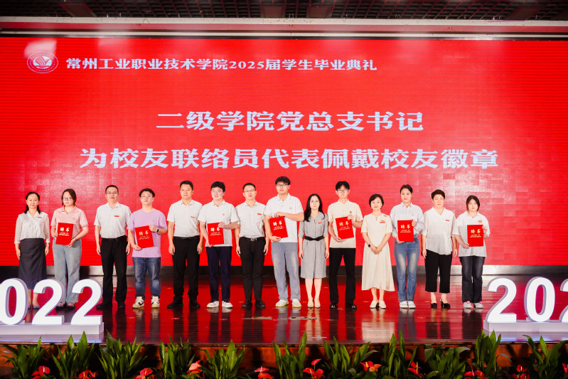 各二级学院党总支书记为2025届校友联络员代表佩戴校友徽章。
