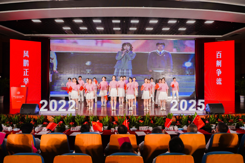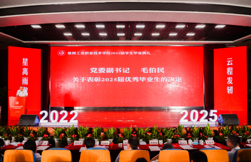 党委副书记毛伯民宣读了《关于表彰2025届优秀毕业生的决定》。党委委员、副校长吴丽云宣读了《关于聘任2025届校友联络员的决定》。党委委员、纪委书记朱晓华宣读了《关于表彰2025届毕业生先进群体的决定》。党委委员、宣传部部长季华为“爱岗敬业”先进群体、“自强不息”先进群体、“卫国戍边”先进群体代表授旗。