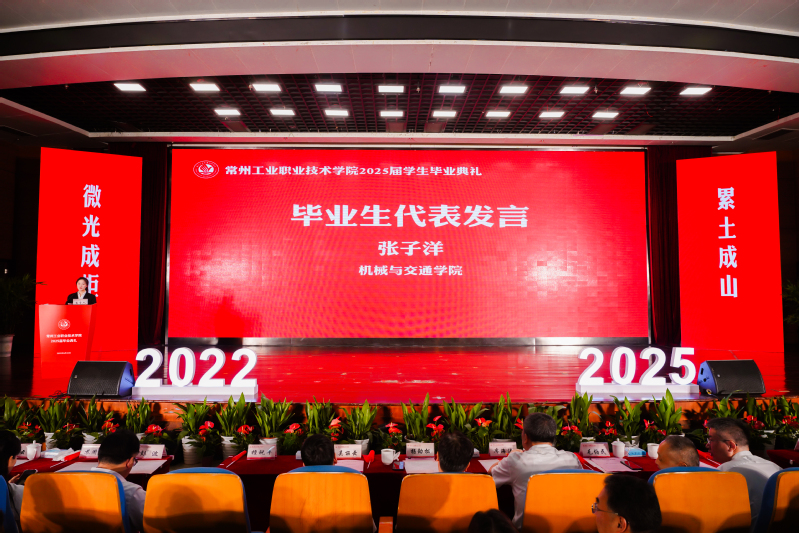 校长杨劲松为毕业生代表颁发毕业证书,并以《云路发轫骋怀天地经纬,鸿途肇兴躬行赤子丹心》为题给全体2025届毕业生上了最后一堂思政课。他寄语全体毕业生要立鸿鹄志,激扬“愿以此身长报国”的青春力量;要担时代责,绽放“关关难过关关过”的青春风采;要谱奉献曲,厚植“且将岁月赠山河”的青春情怀。他强调,人生最浪漫的事莫过于“祖国需要时,你们正青春”,希望全体毕业生带着“精技立身”的坚定抱负,迈向更加壮阔的天地,将朝气与热忱化作逐梦力量,书写下属于常工业学子的辉煌答卷。