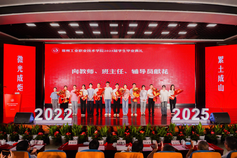毕业典礼还举行了学生献唱以及毕业生代表向教师、班主任、辅导员代表、宿管阿姨、保安大叔、食堂师傅献花等活动。