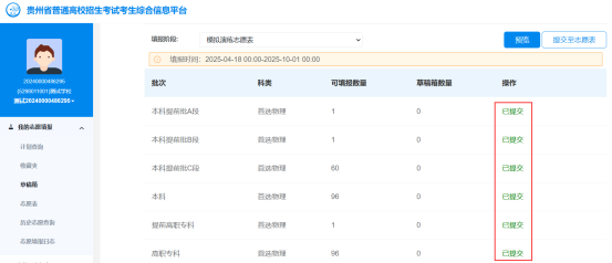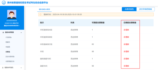 点击批次可以开始编辑对应批次志愿草稿。