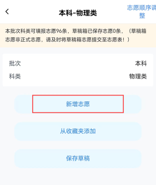 步骤三:保存志愿草稿