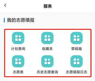 登录系统后,点击“我的志愿填报”菜单,包含“计划查询”“收藏夹”“草稿箱”“志愿表”“历史志愿查询”“志愿填报日志”等栏目,点击后可进入相应界面。