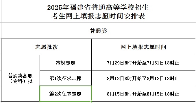 2025年福建省普通高考考生网上填报志愿时间安排表(普通类)