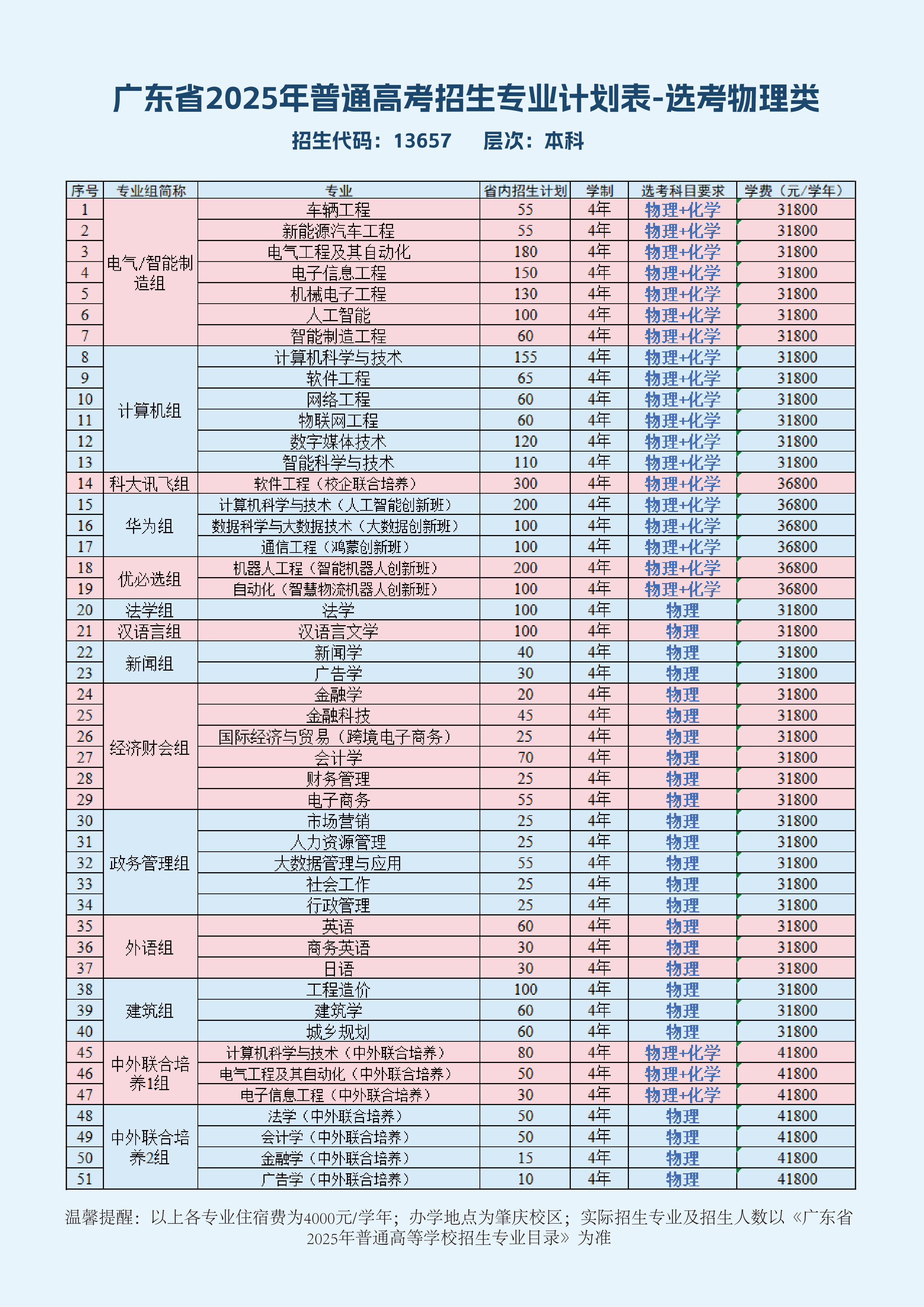 广州应用科技学院关于广东省2025年普通高考招生专业计划表发布 尊敬的家长及社会各界人士: 现发布我校关于广东省2025年普通高考招生专业计划表发布。详情请见下表。 如有疑问,请致电: 招生办公室:0758-2610666 2025年6月19日