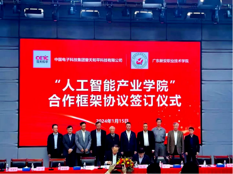 与央企中国电子科技集团普天和平科技有限公司共建“人工智能产业学院”,我院专业对接央企开展建设。