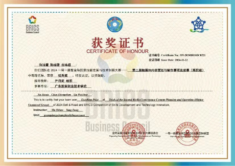 学生参加2024-带一路暨金砖国家技能发展与技术创新大赛-第二届融媒体内容策划与制作赛项选拔赛(高职组)荣获优秀奖