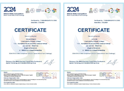 2024 金砖国家职业技能大赛(金砖国家未来技能和技术挑战赛)云计算赛项荣获国家级三等奖2项