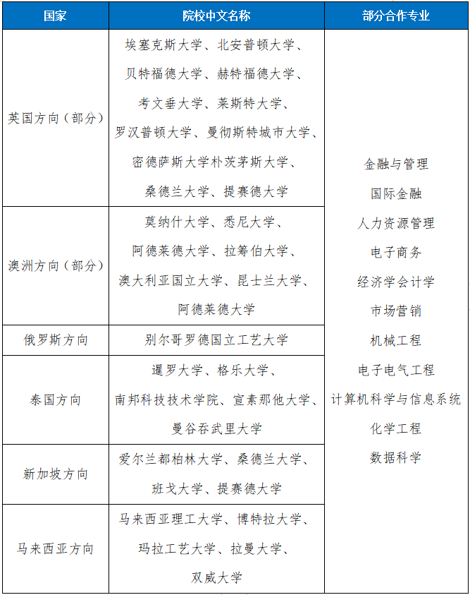 加强与国(境)外大学链接,深化国际教育合作。先后与英国、德国、澳大利亚、马来西亚、新加坡、泰国、俄罗斯、白俄罗斯等国家 的高水平大学在人才培养、专业共建、课程开发、交换学习、实习就业、师生互访等方面开展深度合作,不断拓展多渠道、多层次、多维度的办学模式,提升学校国际化办学水平,着力推进学校国际化事业高质量发展。