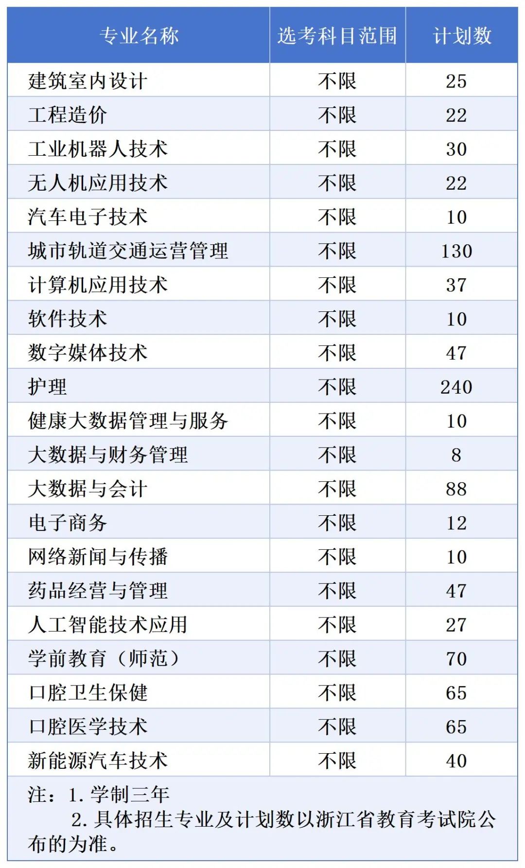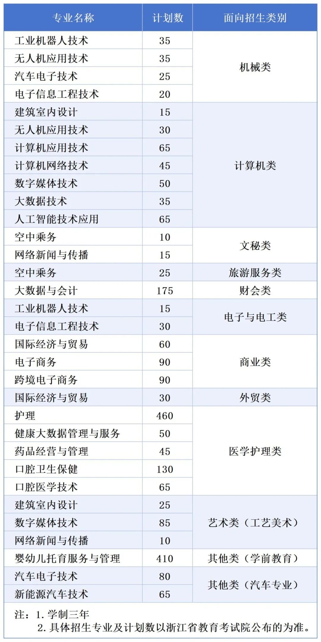 浙江省普通类招生计划
