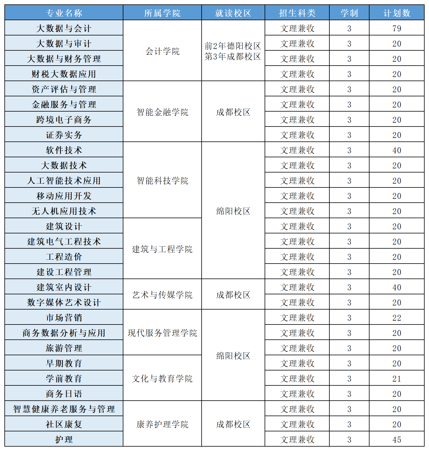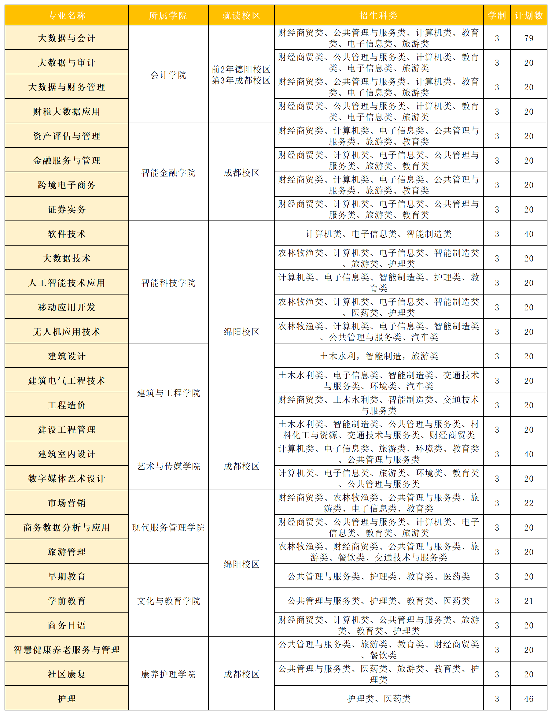 最终招生计划以及专业代码等信息以四川省教育考试院公布信息为准。
