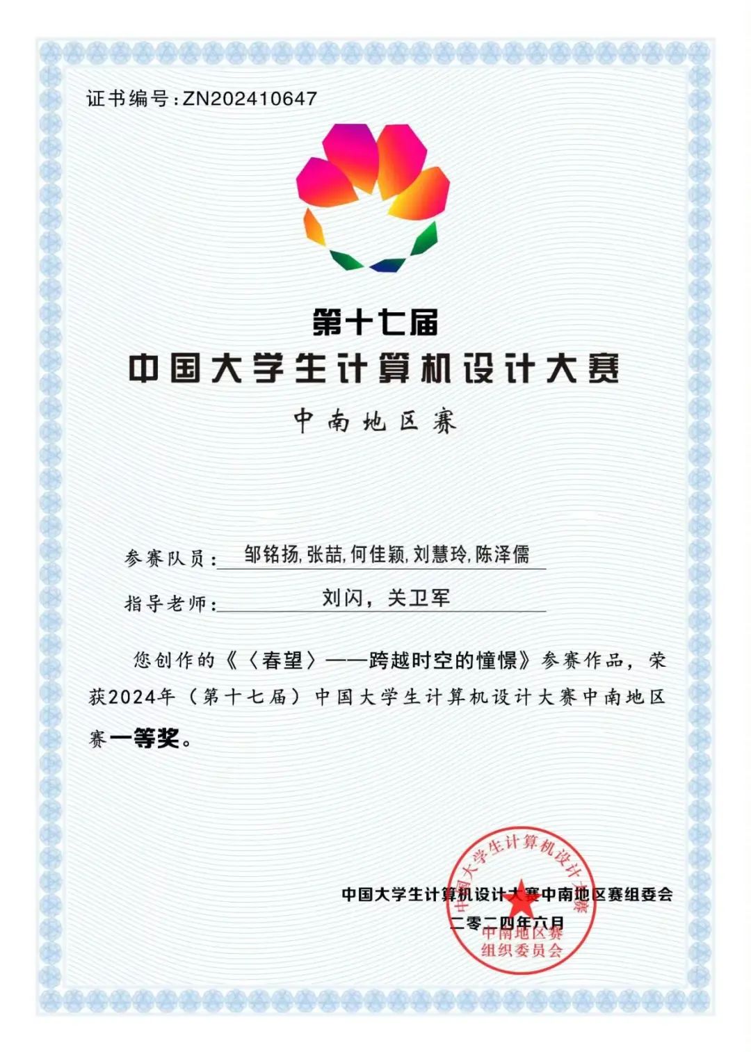 第十七届中国大学生计算机设计大赛中南地区一等奖