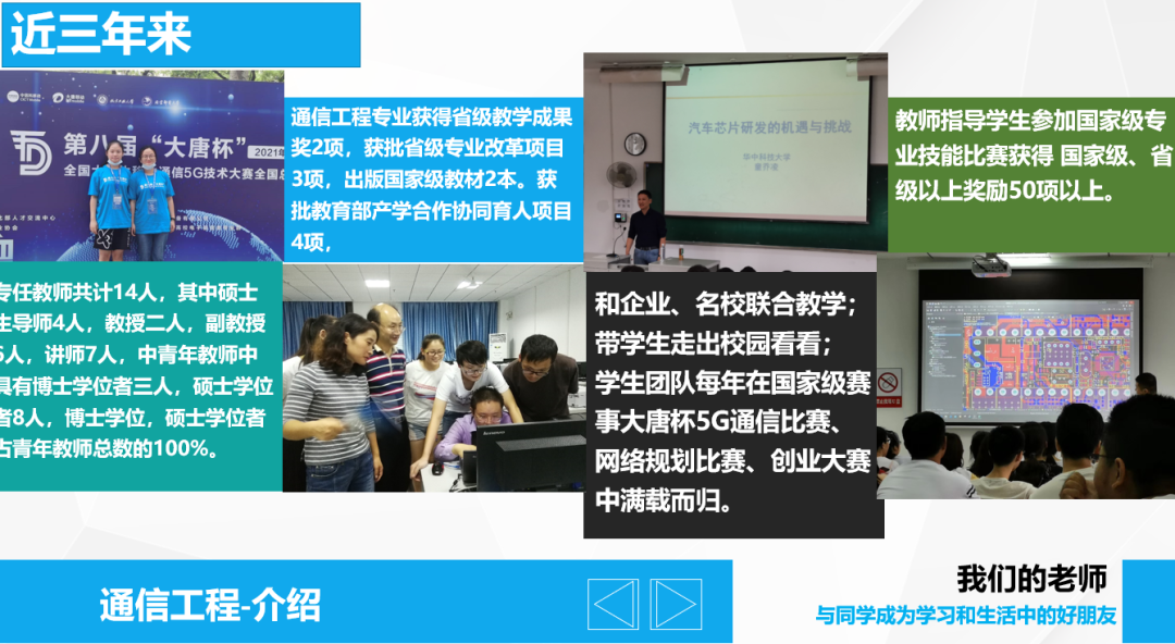 历经18载的沉淀与积累,我们拥有一支科学成熟的师资队伍。专业核心聚焦于新通信ICT领域的学习,与各大企业运营商紧密合作,共同打造实践教学项目。4年培养过程中,我们开展十几项实践实训,让学生真正拥有动手能力。我们拥有全校唯一的融合通信虚拟仿真实训室,这为学生们提供了前所未有的实践体验。