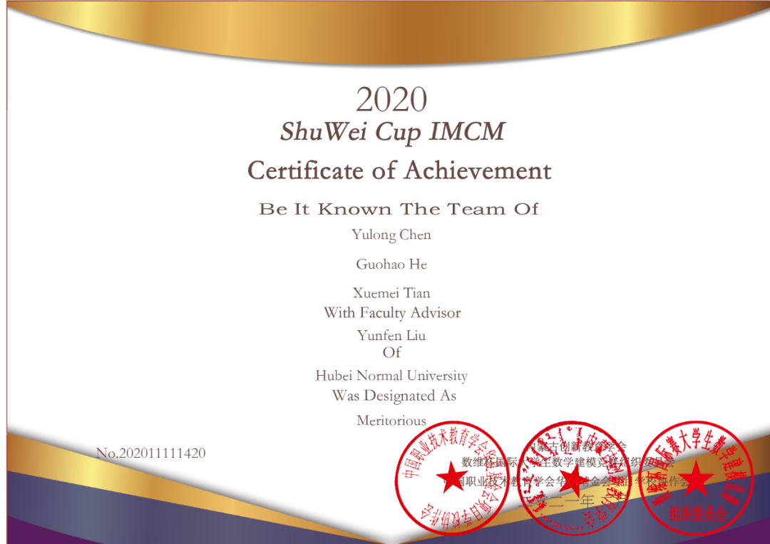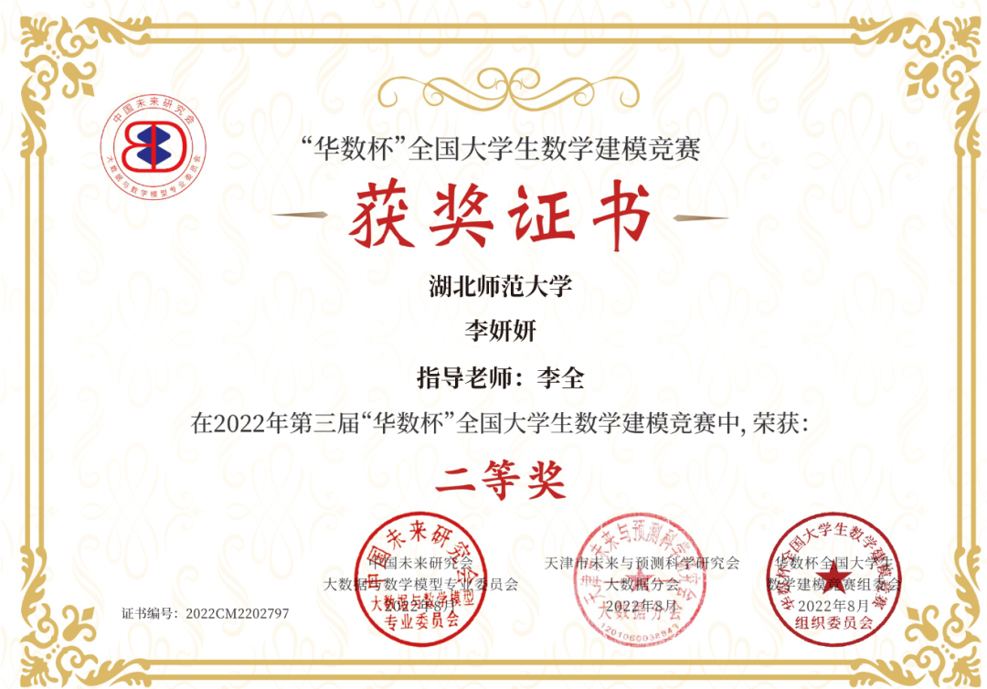 2022年第三届“华数杯”全国大学生建模竞赛二等奖