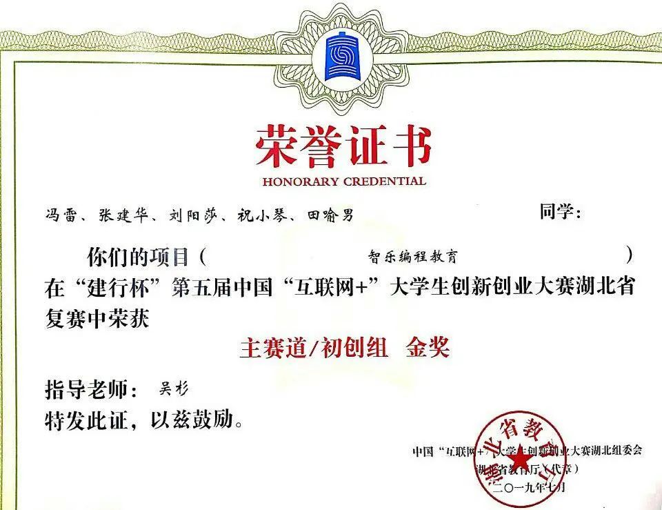 第五届中国“互联网+ ”大赛湖北赛区金奖