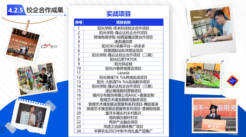 真题真做场景化育人:近两年,学生参与完成20余项校企合作真实项目,其中隆必达项目持续运营,学生团队通过系统性理论学习和真实项目实践,年营业额突破750万元,累计营业额突破1500万元。