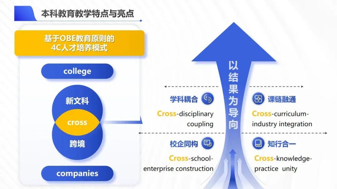 本专业立足数字经济前沿,依托福建跨境电商产业优势,培养具备扎实英语功底与跨境电商运营能力的全球数字贸易精英。构建4C卓越人才培养模式,深化产教融合育人,通过产业学院真实项目强化国际贸易全流程运营能力,通过系统性语言学习与实践,提升跨文化思辨和语言服务能力。培养外语应用能力强的国际商务高素质应用型人才。