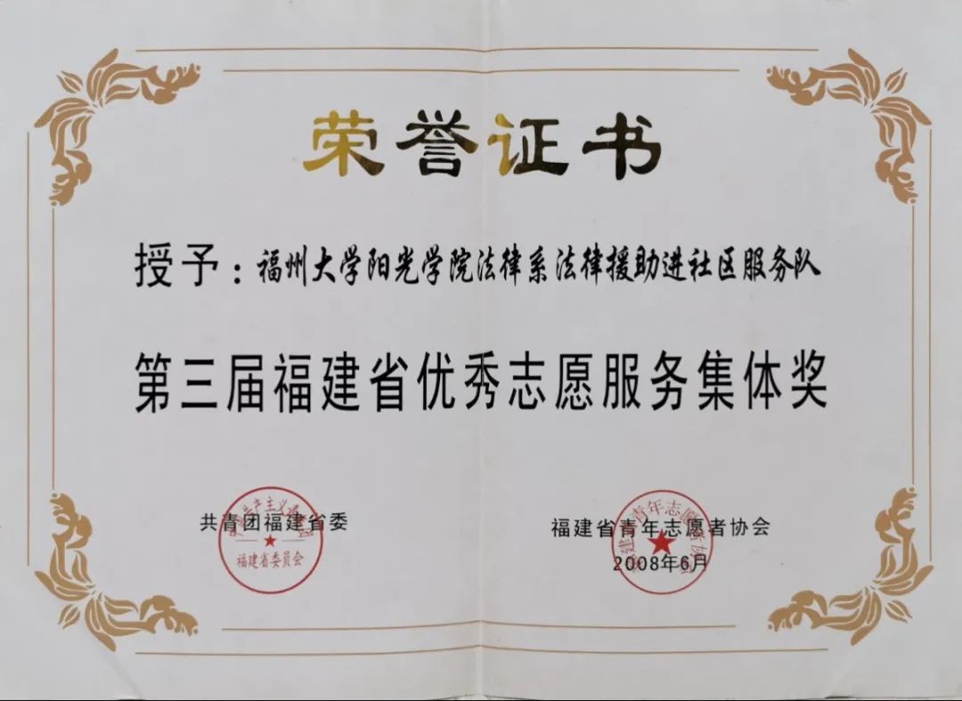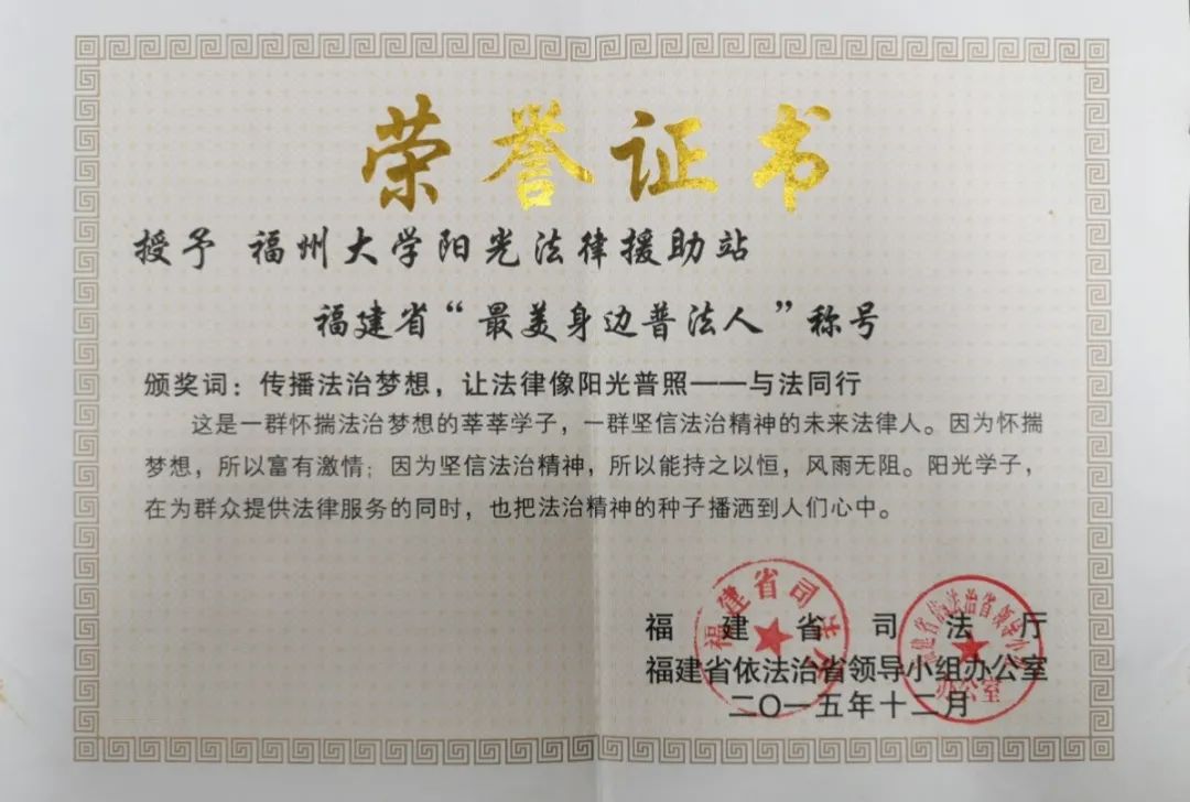 法学院先后被省市政府、单位授予福建省人民政府立法基层联系点、福建省法律进学校活动先进集体、福建省最美身边普法人、福建省“148”法治志愿服务平台、福州市法治宣传教育先进集体、福州市普法依法治理工作示范点等称号;荣获团中央“法治中国青春行”百强项目、福建省新时代文明实践志愿服务项目大赛金奖、“挑战杯”福建省大学生创业计划竞赛银奖、福建省“创业之星”、福建省大中专学生志愿者暑期文化科技卫生“三下乡”社会实践特色重点实践团等奖项。