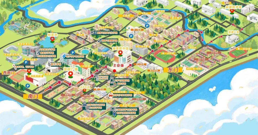 肇小巴路线:国砚广场—福慧图书馆学术报告厅(讲座、咨询摊位)一第四饭堂(麦当劳)—新校园学生宿舍区—新校园教学楼一体育馆—翰墨池—艺术大楼—美术馆—国砚广场。
