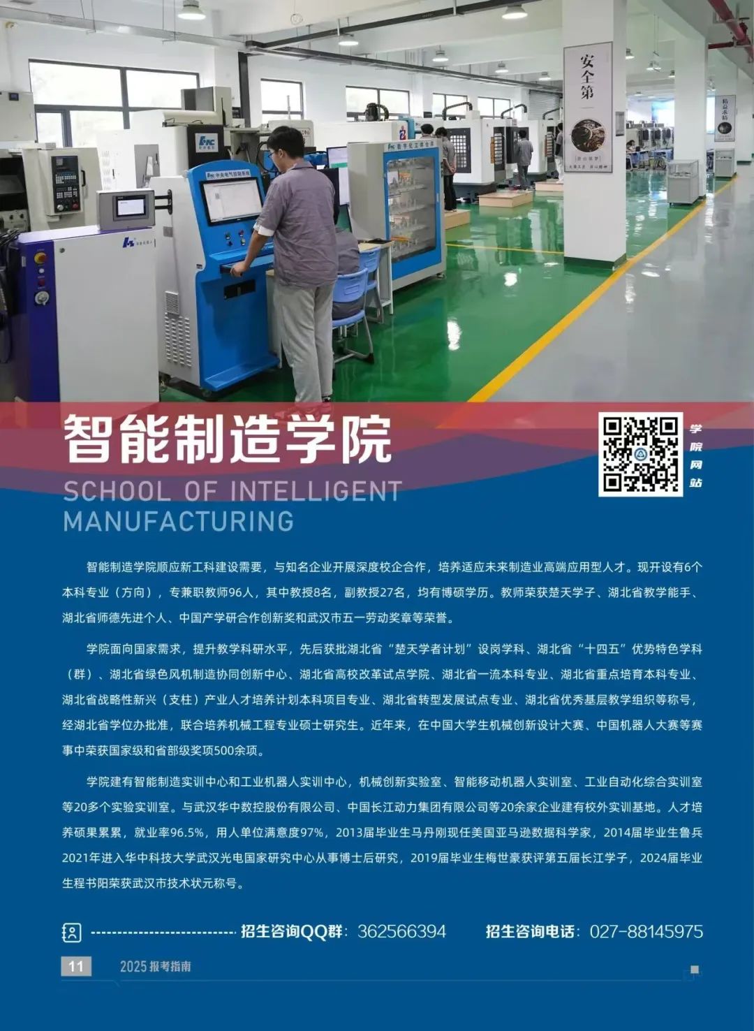 学院建有智能制造实训中心和工业机器人实训中心,机械创新实验室、智能移动机器人实训室、工业自动化综合实训室等20多个实验实训室。与武汉华中数控股份有限公司、中国长江动力集团有限公司等20余家企业建有校外实训基地。人才培养硕果累累,就业率96.5%,用人单位满意度97%,2013届毕业生马丹刚现任美国亚马逊数据科学家,2014届毕业生鲁兵2021年进入华中科技大学武汉光电国家研究中心从事博士后研究,2019届毕业生梅世豪获评第五届长江学子,2024届毕业生程书阳荣获武汉市技术状元称号。