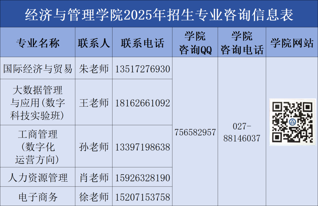 学院采用“两对接、三融合”模式培养新商科人才。在专业设置上与产业发展需求对接,课程设计上与从业能力对接;通过“双证+双创”教育,促进理论、实践和创新创业有机融合。以此为基础的教学改革与实践,两次获得湖北省优秀教学成果奖。学院办学条件优良,建有教育部高校实践教学装备研究中心、国家电子商务虚拟仿真教学分中心和经济与管理实训中心(下设大数据、新金融、数字商贸实习实训基地等15个实验室)。