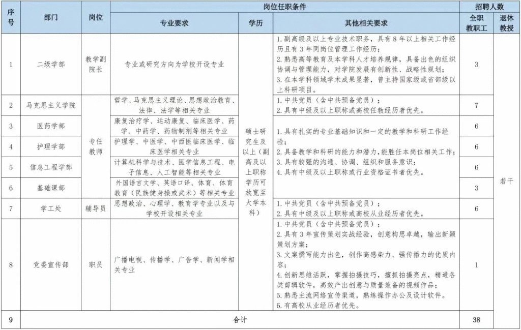 4.所学专业或所从事专业工作与我校专业建设发展需要相符,业务能力水平高,适合我院相关教学科研、管理工作。