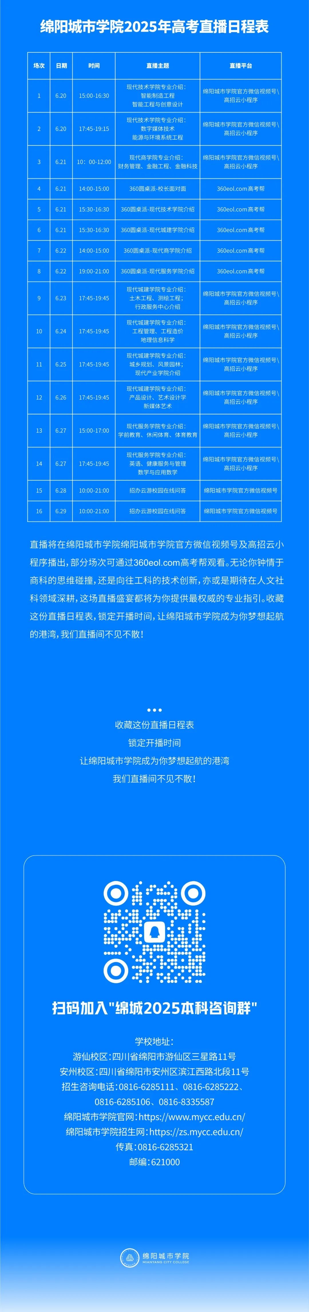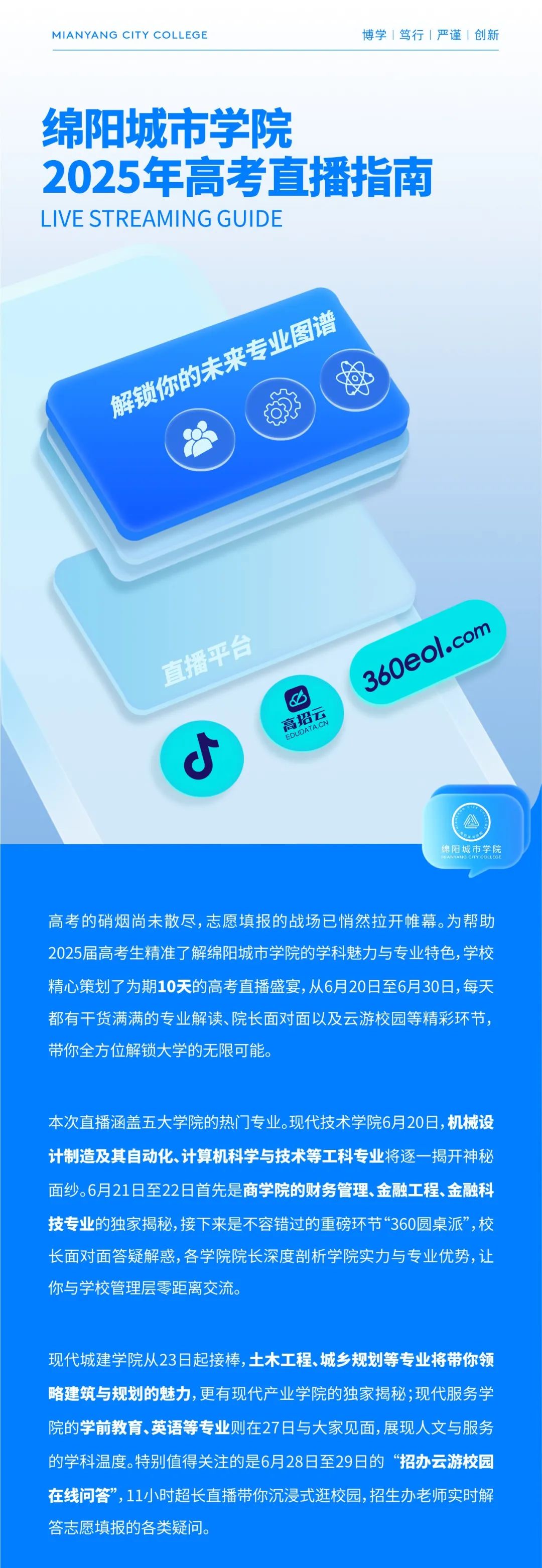 绵阳城市学院 2025 年高考直播指南:解锁你的未来专业图谱