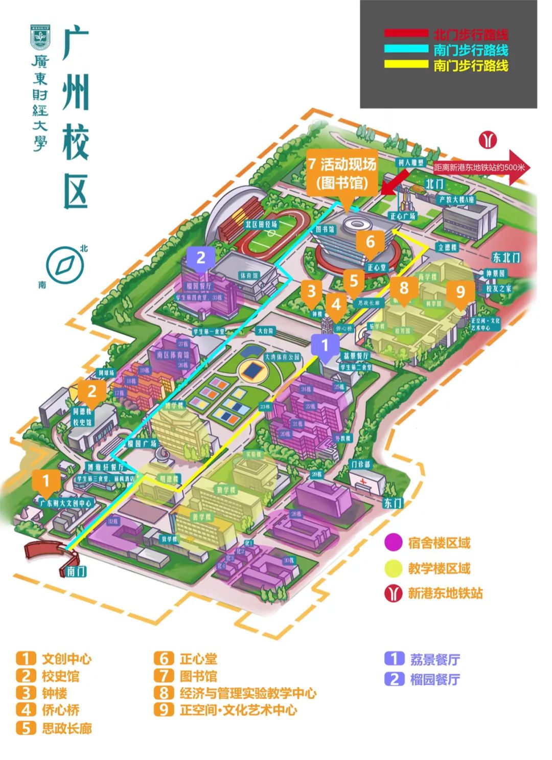 2.搭乘14、37、206、264A等公交车,到广东财经大学总站下车,即可到达学校南门。学校在南门口安排接驳电瓶车,可免费乘坐电瓶车到达活动现场。